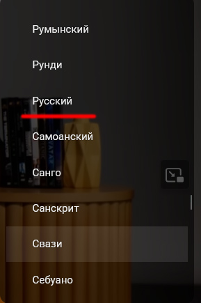 И в появившемся списке выбираем "Русский" (или любой другой, который вам удобнее).