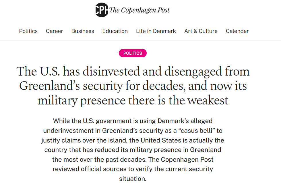 Это при том, что если бы Трамп не был таким идиотом, Гренландию можно было бы совершенно законным путем поставить под американский контроль (не аннексировать, конечно). Но он тот, кто он есть, поэтому он и действует как носорог в посудной лавке. И там не находится ни одного вменяемого человека, который ему бы об этом сказал. Впрочем, учитывая то, какими людьми он себя на этом сроке окружил - в этом нет ничего удивительного.