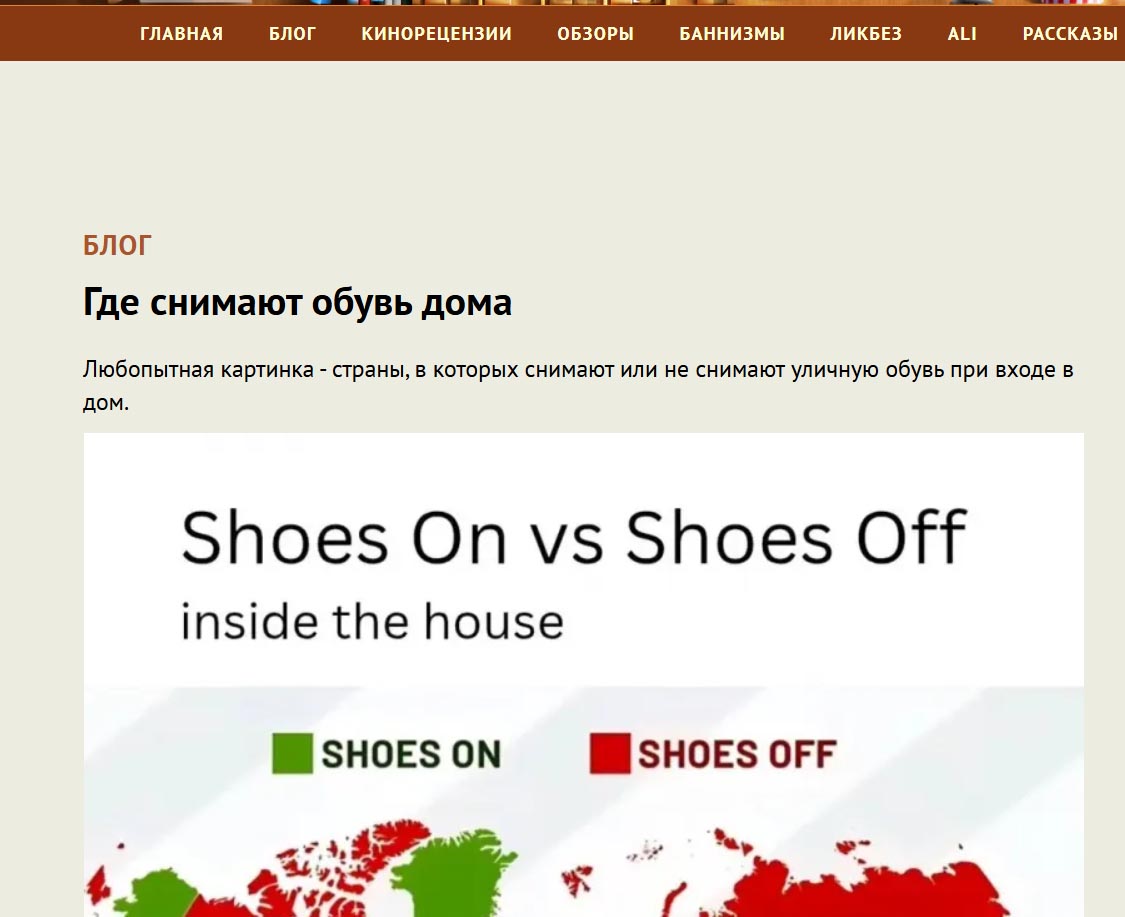 Любопытная картинка - страны, в которых снимают или не снимают уличную обувь при входе в дом.