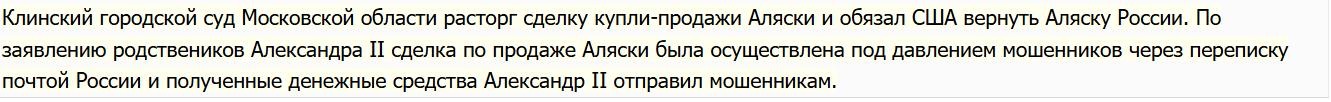 Жертв похищения инопланетян ещё нет? Будут. Насмотрятся каких нибудь "Планетян" и завалят суды исками. Жадные и глупые люди делают прекрасную работу - рушат к свиням собачьим правовую систему эрэфии. Это можно только приветствовать аплодисментами. Государство рассейское рухнет, как гнилой сарай из-за жадности и мерзости самих рассеян. Говорят, что когда бог хочет наказать, то он лишает разума. И мы это видим воочию.