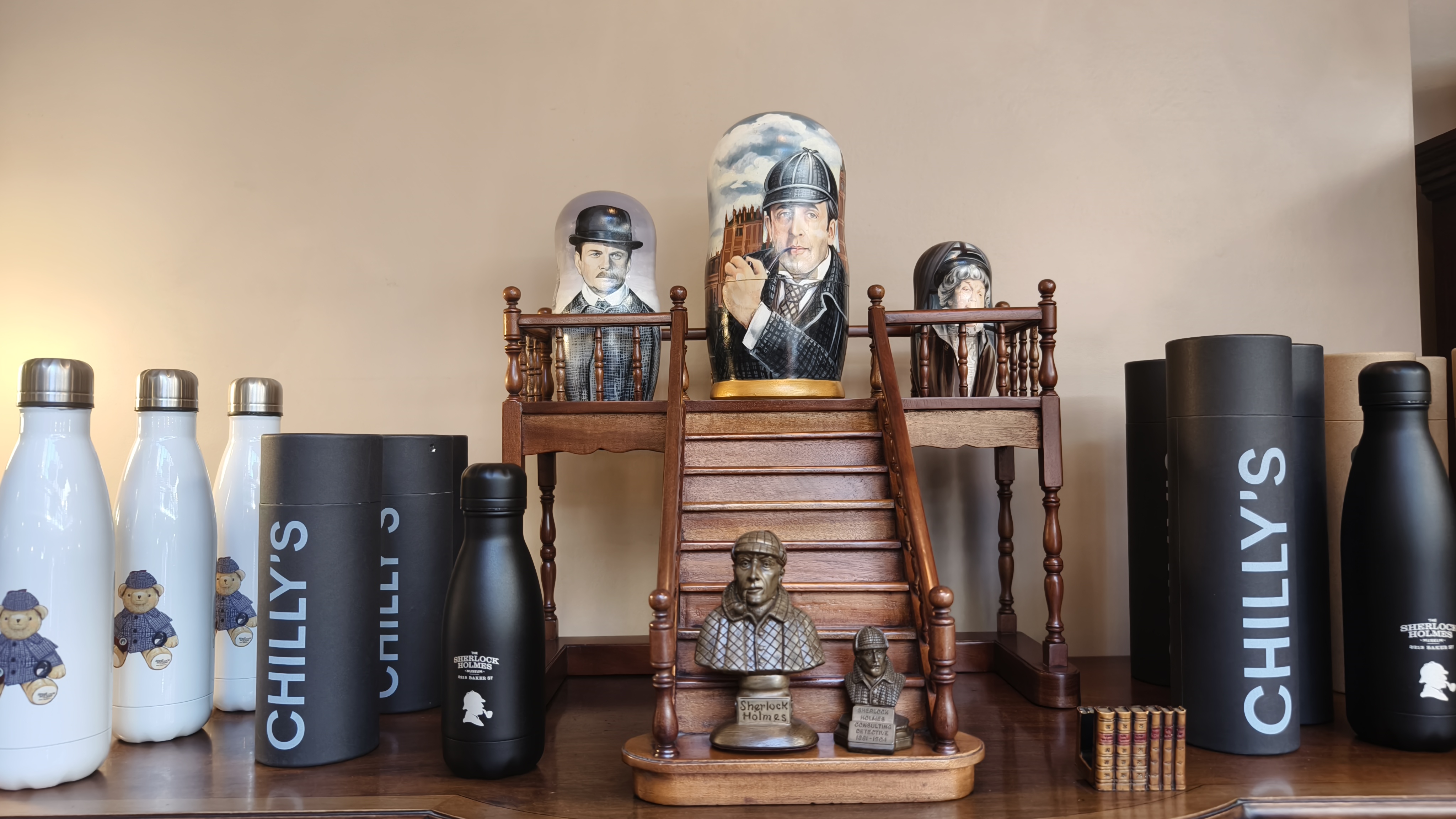 Портрета я там не заметил, но есть матрешки 😄 Учитывая огромную популярность Холмса среди российских туристов, это неудивительно. Сами англичане с нашей экранизацией почти не знакомы. Впрочем, судя по отзывам, те, кто все-таки смотрел, действительно высоко ее оценивают