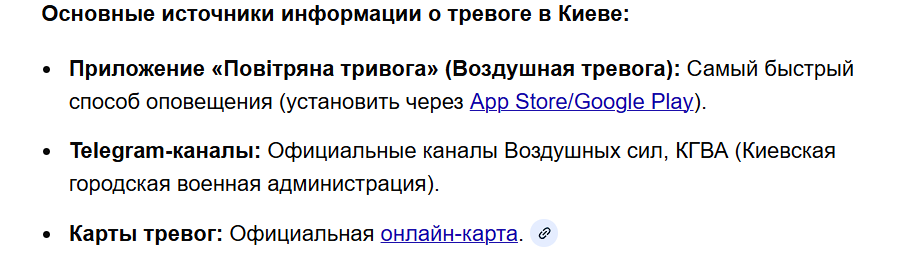 Понятно, это объясняет причину.А массовые сообщения провайдеров (как в Японии о землетрясениях) напрямую на телефоны в Украине работают? Или этой системы нет?По моему израильскому опыту - реально помогали сирены в городе, сообщения на телефон все равно приходили позже (время подлета у нас из Газы тоже очень небольшое, что-то типа пары минут, поэтому скорость важна).