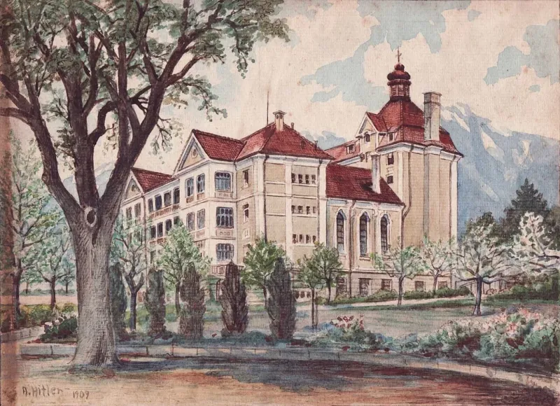 Насколько я помню его биографию, молодой Адольф (тогда Шикльгрубер) дважды пытался поступить в Художественную Академию в Вене. Причем ему говорили - смотри, у тебя здания получаются очень хорошо, видно внимание к деталям (а вот люди совсем слабо), ты чувствуешь архитектуру - поступай в Архитектурную Школу. Но он как баран на новые ворота полез поступать во второй раз через год и даже первичный отбор не прошел. В результате, вообще не получил образования. Все из-за самомнения, что он великий непризнанный художник, которого гнобят. Тупость, ослиное упрямство, неверная самооценка, неумение прислушиваться к мнению опытных людей - в принципе, ничего в течении жизни у него не поменялось.