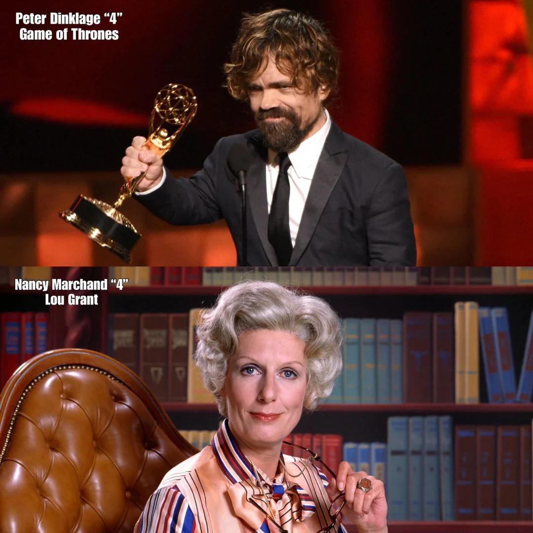 Любопытная подборка: актеры и актрисы, получившие несколько премий "Эмми" за одну и ту же роль в сериале. По убывающей - от 6 до 3 премий. Также сюда включены "Эмми", полученные за телевизионные шоу, а это не совсем то же самое, что и сериал. Поэтому среди сериалов абсолютная рекордсменка - несравненная Джулия Луи-Драйфес: 6 побед за сериал "Veep". Кстати, за "Сайнфелд" ее номинировали 7 раз, но получила она только одну премию.