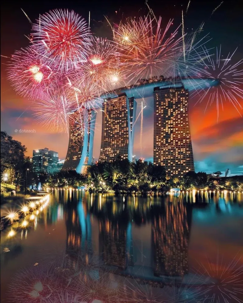 Новогодний салют в Marina Bay Sands, Сингапур. Похоже, без AI там не обошлось, но все равно хочется полюбоваться.