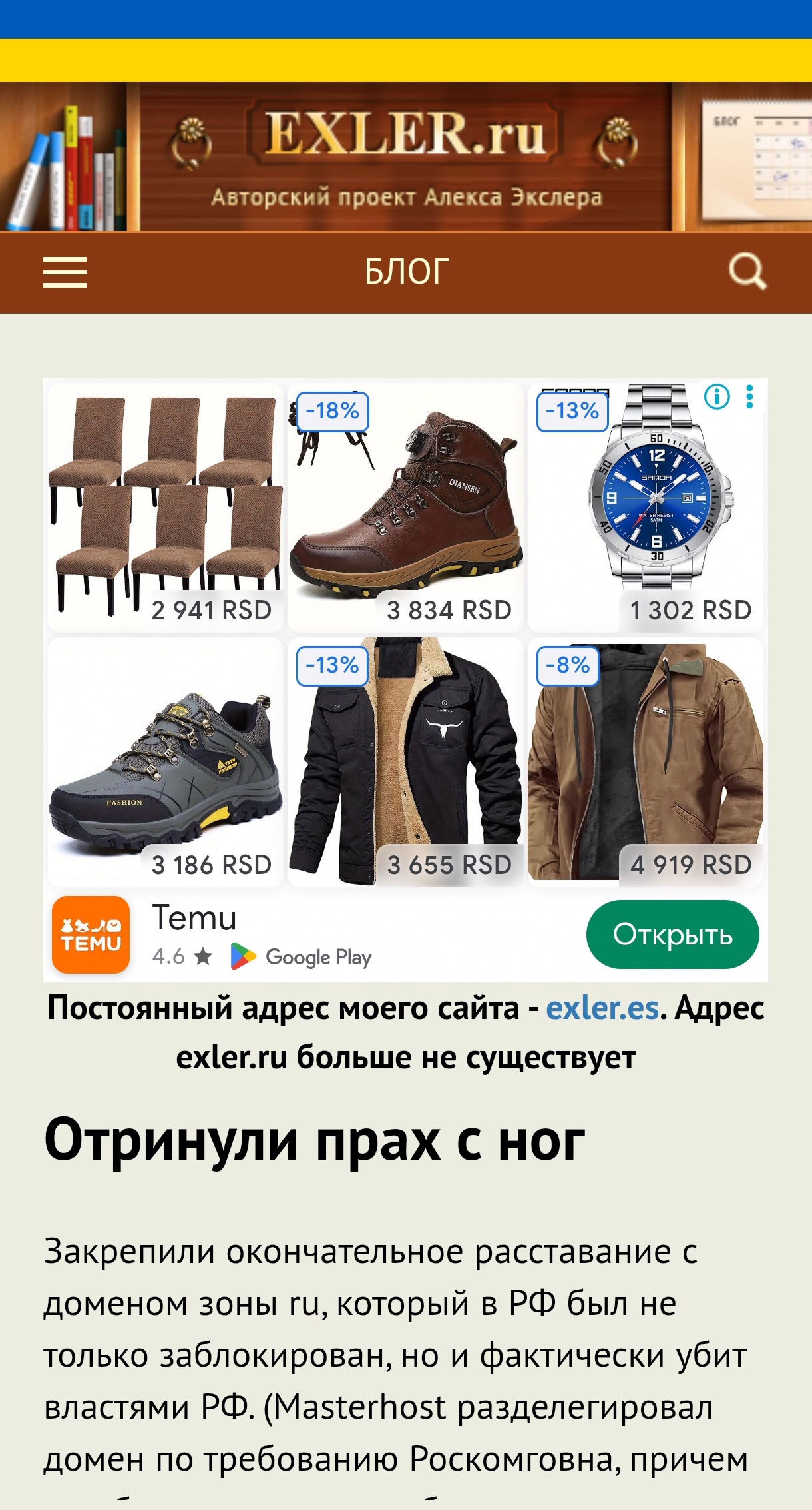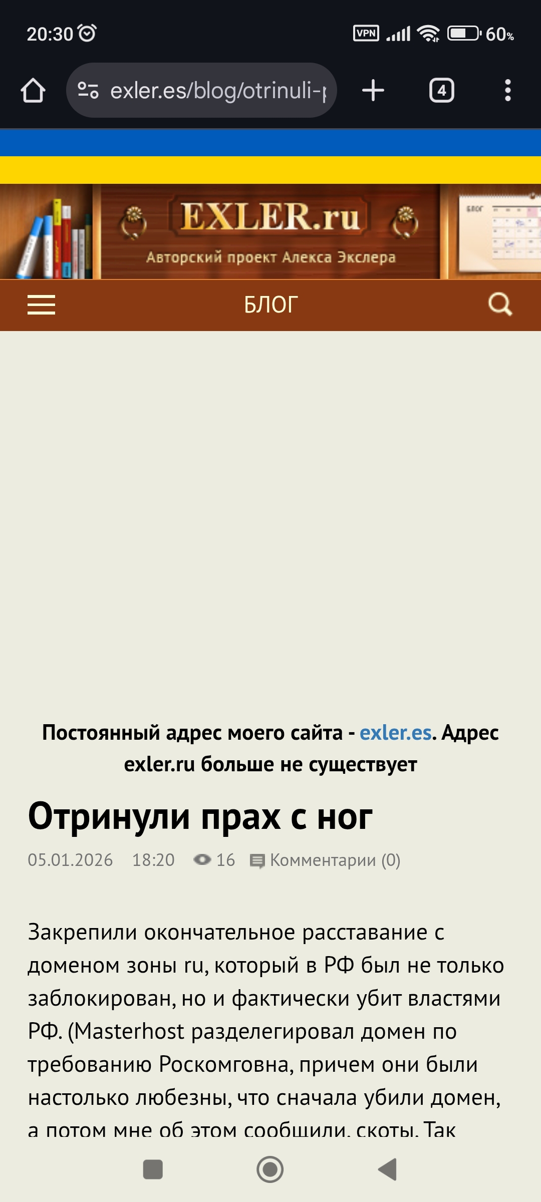 Постоянный адрес моего сайта - exler.es. Адрес exler.ru больше не существует