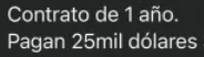 Оплата 25 тысяч долларов через 30 дней после подписания контракта