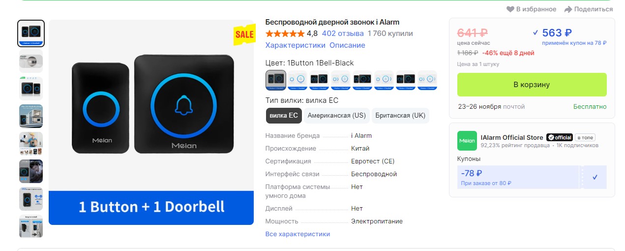 Он имеет радиус сигнала 300 м, подсветку корпуса, IP65 влагонепроницаемость, легко монтируется и работает даже при очень низких температурах.