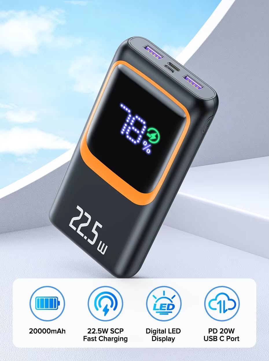 Быстрая зарядка (Вход): 22.5W Max для оперативной перезарядки самого повербанка.