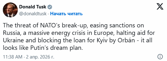 Угроза распада НАТО, смягчение санкций против России, масштабный энергетический кризис в Европе, прекращение помощи Украине и блокирование Орбаном кредита для Киева — всё это выглядит как план мечты Путина.