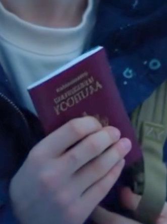 И там много очень трогательных деталей. Сначала молодой человек стоит перед вывеской "Россия" и там один пейзаж. Когда его типа как впускают, там уже совсем другой пейзаж - видимо, он отдаляется от России-матери. Также интересно то, что пограничник сначала один, а потом показывают, как молодой человек стоит спиной к пограничнику и обращается, видимо, уже к другому пограничнику. Которого там нет.
