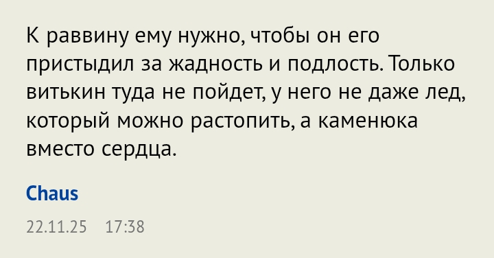 Детский сад штаны на лямках:1. Ах, Утикоф рекомендует Ушакову, как общаться с Трампом. Посредники (а Уиткоф именнл посредник) так делают ВСЕГДА. Точно так же Келлог рассказывал Зеленскому, как общаться с Трампом.2. Ах, план на самом деле Ушакова. Я правильно понял, что это Ушаков предложил 100 млрд. российских денег отправить на восстановление Украины? И это всерьез принимают за чистую монету и обсуждают? Блин, ну мозги-то иногда включать надо. Тупо надергали предложений из разных мест и вбросили для затравки.