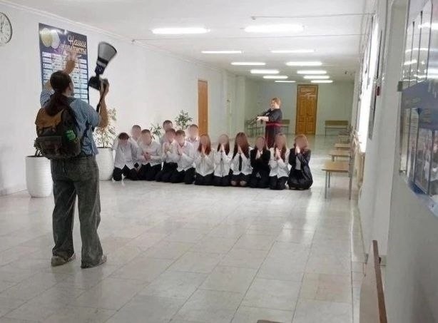 Учеников в школе на Южном Урале поставили на колени под дулом автомата ради фотосессии. Автомат держит педагог