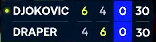 Это Новак Джокович vs. Джек Драйпер. Indian Wells 2026. розыгрыш на 1:44.