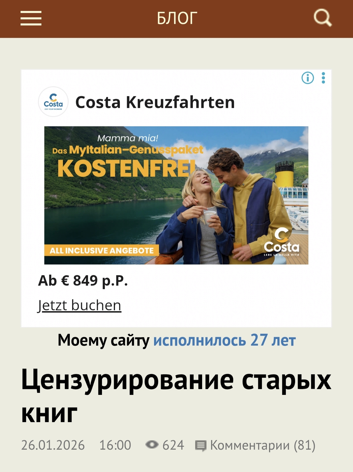 Нацисты и коммунисты сжигали книги. Игиловцы и талибы взрывают древние памятники. Рашисты вырезают кадры из фильмов или перозвучивают их. А ещё редактируют книги. Западные толерасты тоже взялись за книги, дойдет через и до фильмов.