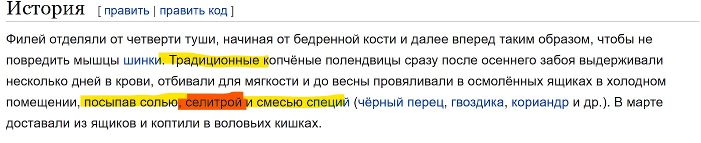 Кстати, нитриты содержатся и в моем любимом хамоне: я писал в статье о производстве хамона, что свиную ляжку перед засолкой обрабатывают в нитритной соли, иначе ляжка просто не сохранится.