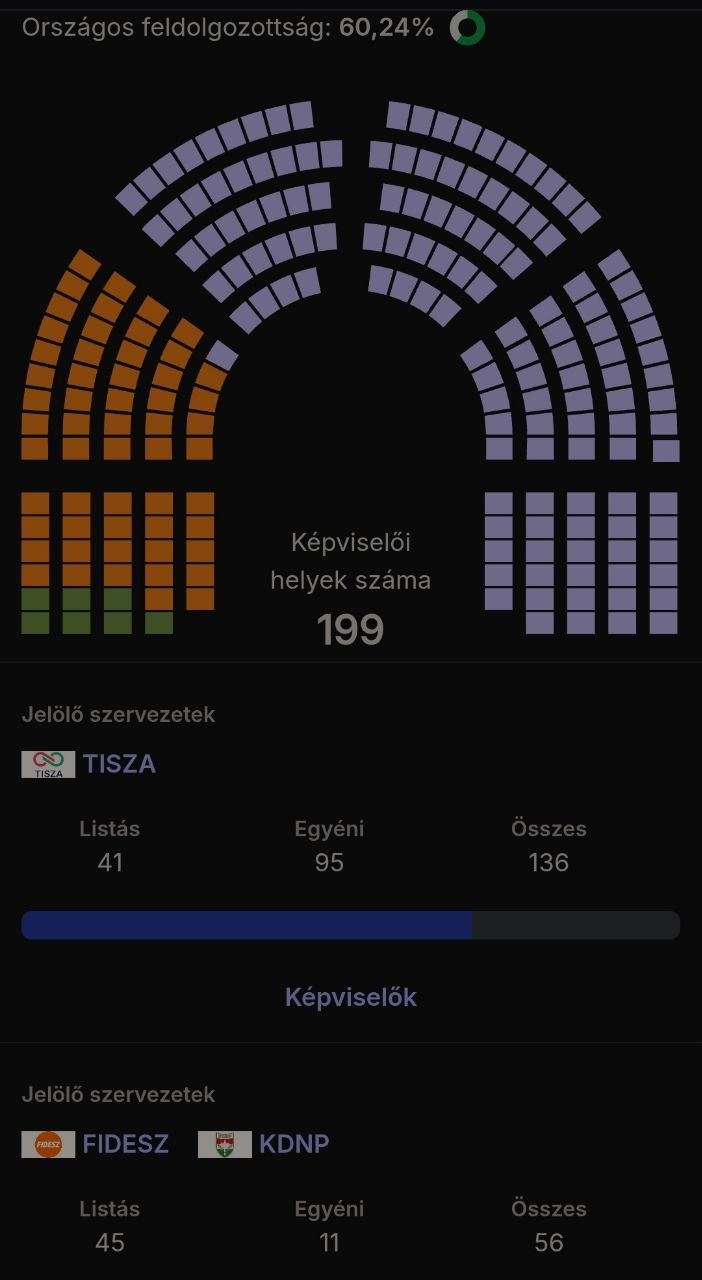 Результаты выборов в Венгрии в режиме реального времени: Орбан признал победу партии «Тиса» Петера Мадьяра после того, как экстраполяции показали, что оппозиция набирает две трети голосов
