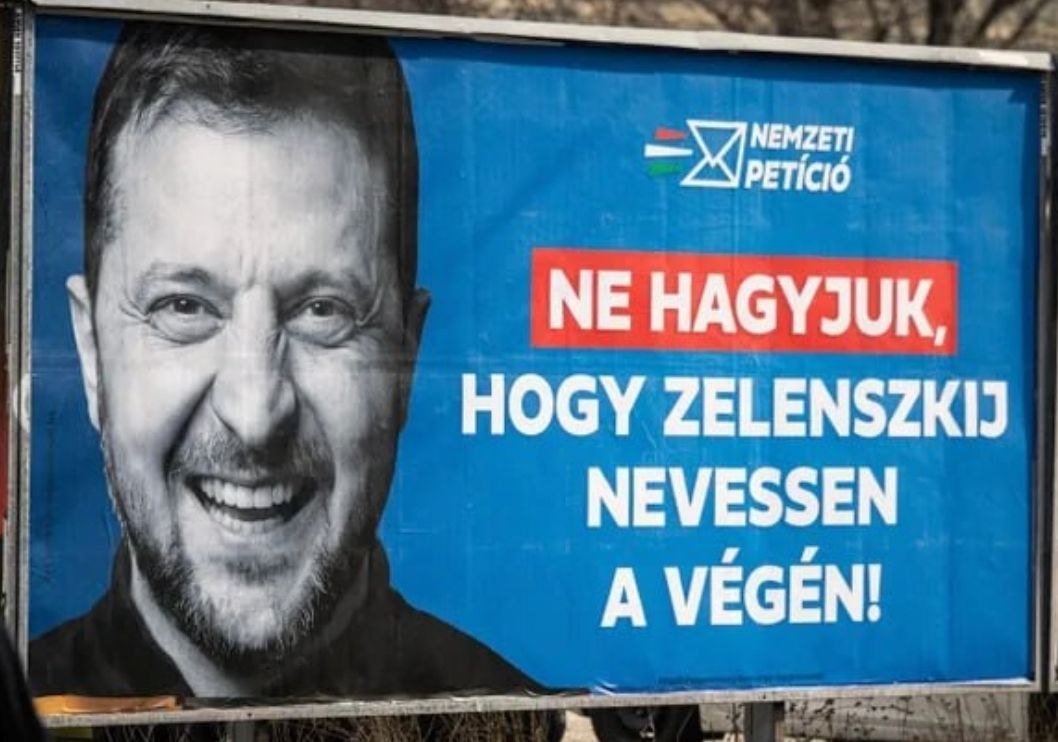 Так вся Венгрия была завешана плакатами Орбана с лицом Зеленского. Пример: "Не дайте З смеяться в конце". Текст повторяет тот, который был на старом плакате Орбана с именем и лицом Сороса.