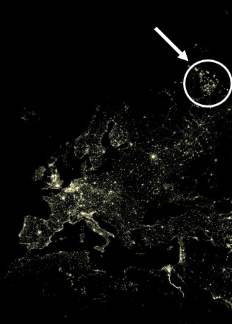 Вас не смущает сильно не ночной цвет неба? Это снято на лошадиной выдержке. Вы такой же свет получите даже в деревне, если на 10 минут поставить.