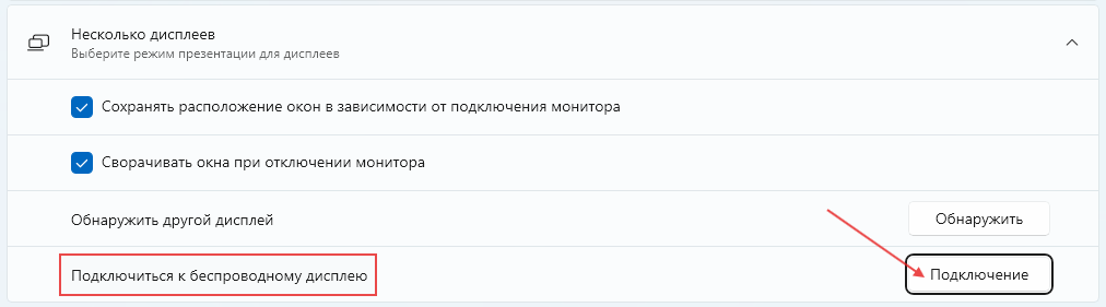 2. Если все же очень-очень хочется, чтобы подключение-таки было беспроводным, мало ли там уйти куда-то с ноутом на диван. То сейчас в стандарте Вин11 есть "подключение беспроводного монитора" по Miracast (который есть всегда, так как идет по WiFi), который является стандартом, в отличие от везде пихаемой проприетарщины Chromecast. Miracast-адаптеры продаются тоже (если вдруг в мониторе нету), при этом подключить можно что угодно, а не еще более глухая китайщина с неизвестным протоколом точка-точка.