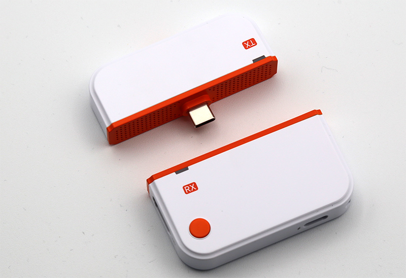 Трансмитер: головка для подключения к Type-C, порт Type-C для подачи питания, светодиод, показывающий режим работы, кнопка сопряжения.