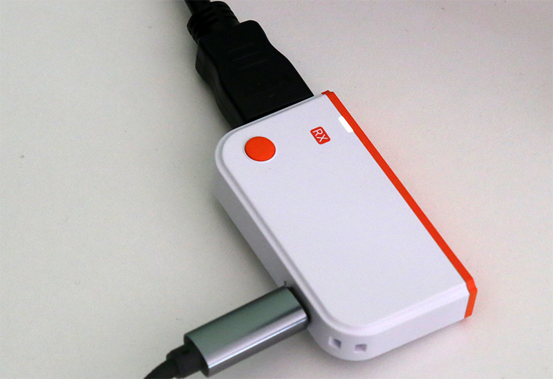 Ресивер: порт Type-C для подключения питания, светодиод, кнопка подключения и настройки изображения, порт HDMI.