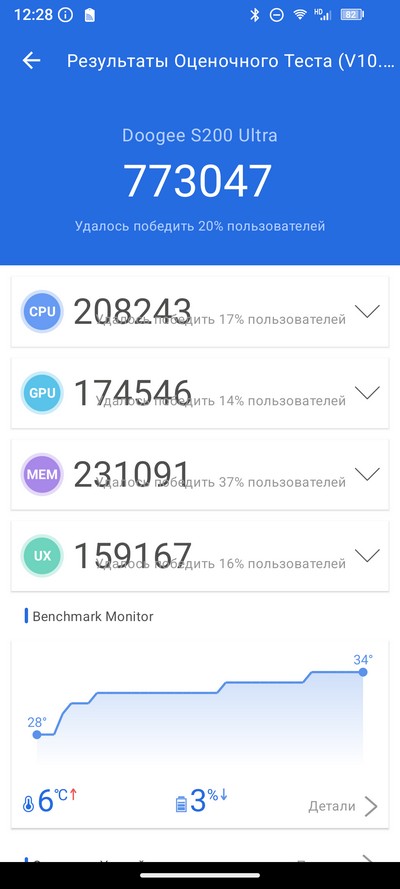 Стресс-тест AnTuTu. Батарея во время теста нагрелась до 42 градусов - нормально.