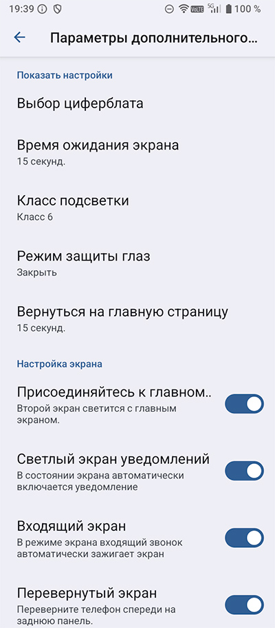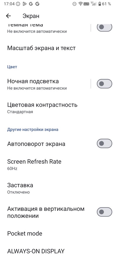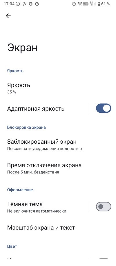 Настройки экрана - стандартные для Android. Есть темный режим, режим чтения, можно настраивать размер шрифта и масштаб.