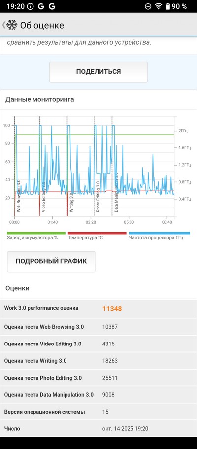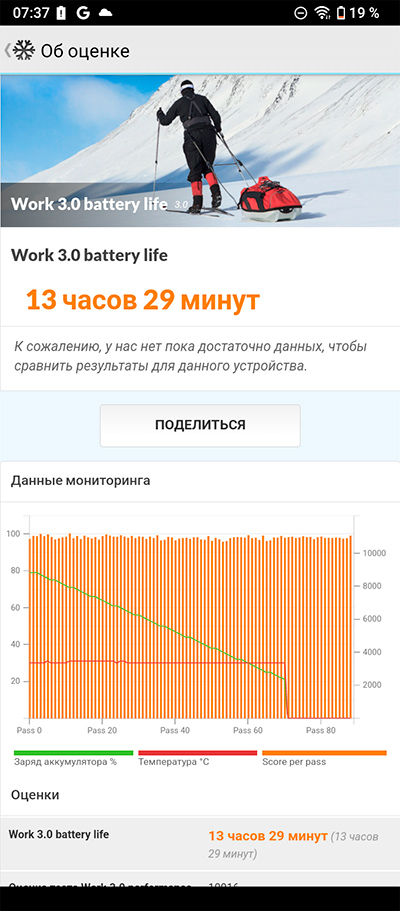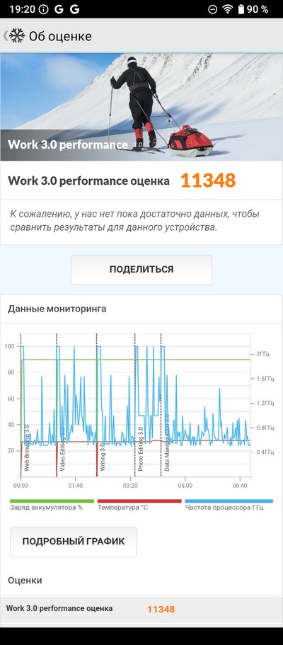 Тест загрузки PCMark. Результат хороший, при серьезной загрузке смартфон должен продержаться полный день.