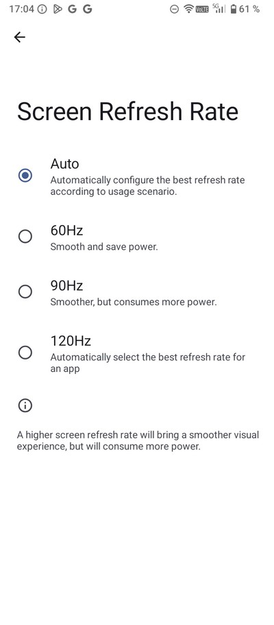 Частота обновления задается вручную - 60, 90, 120 Гц, также есть автоматическая настройка.
