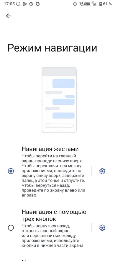 Режим навигации - стандартные три кнопки или андроидные жесты.