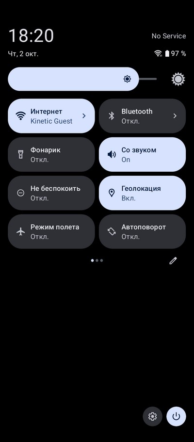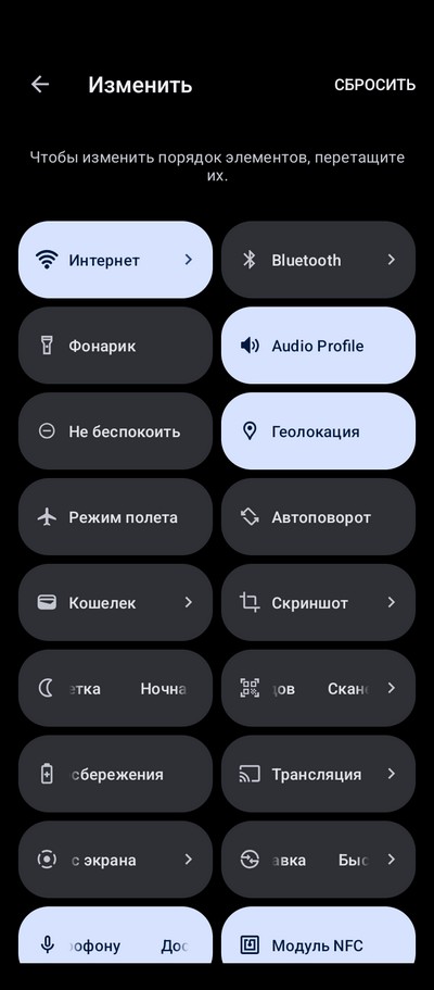 Настраиваемая область быстрых переключателей.