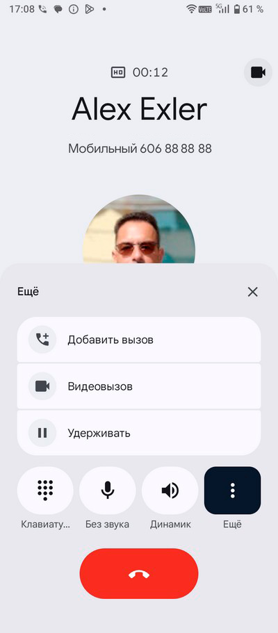 Входящий звонок и режим разговора.