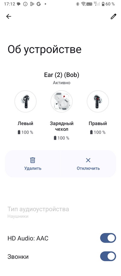 Для проверки беспроводного звучания подключил наушники Nothing Ear (2). Наушники подключились по кодеку AAC. Качество хорошее: есть какие-то басы, неплохая середина и достаточно детальные высокие. Максимальная громкость вполне достаточная для прослушивания в громком окружении.