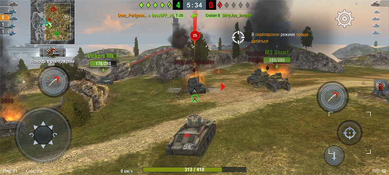 У танков на высоких настройках качества частота кадров все время держалась на 60 FPS, не проседала.