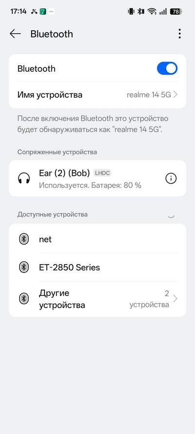 Для проверки беспроводного звучания подключил наушники Nothing Ear (2). Наушники подключились по LHDC. Качество - очень хорошее: есть какие-то басы, не проваленная середина, неплохие высокие, которые, впрочем, могли быть детальнее. Уровень максимальной громкости был достаточен для использования на улице в шумном окружении.