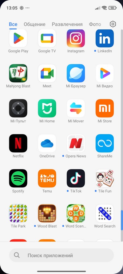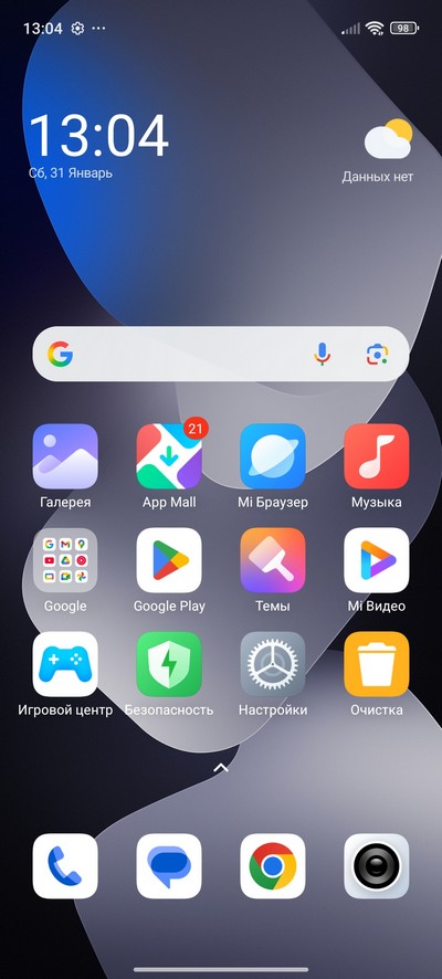 Главный десктоп и установленные приложения.