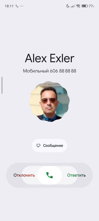 Входящий звонок и режим разговора.
