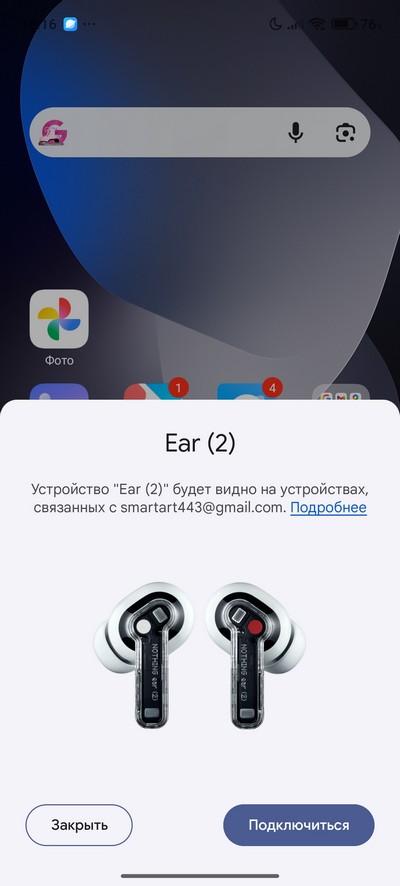Для проверки беспроводного звучания подключил наушники Nothing Ear (2). Наушники подключились по кодеку AAC.