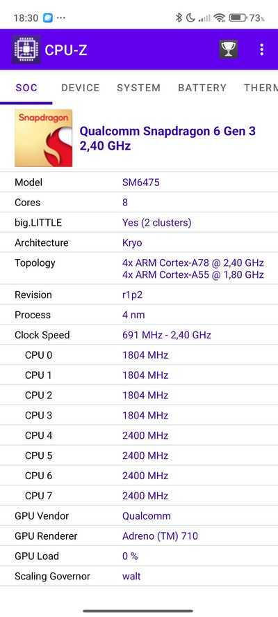 Процессор: Qualcomm Snapdragon 6 Gen 3 (4 nm)
