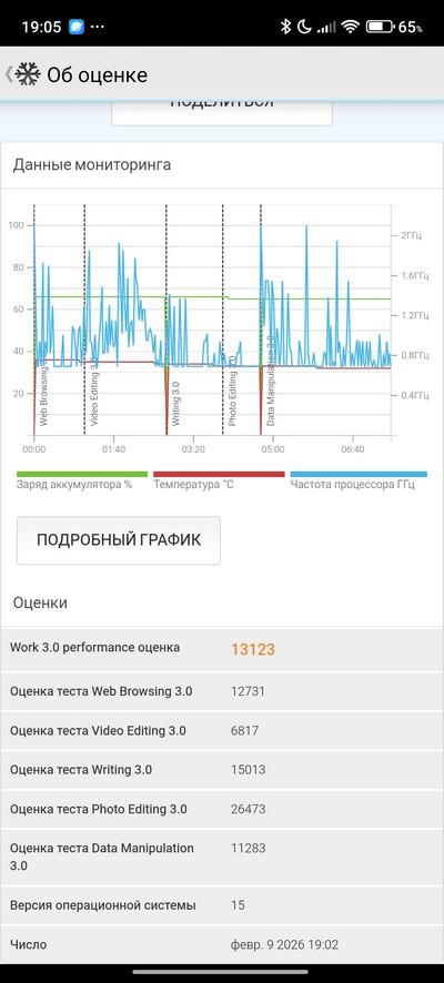 Синтетический тест PCMark. Отличный показатель, он означает, что при серьезной нагрузке смартфон продержится сутки.