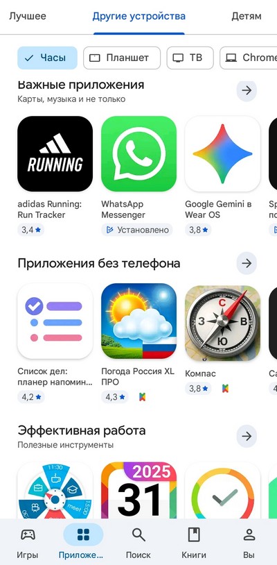 На часы можно устанавливать любые приложения из Google Play: можно это делать прям на часах, но удобнее - из этого приложения на смартфоне.
