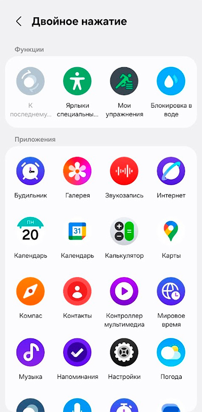 Настройки кнопок и жестов. На двойное нажатие верхней кнопки можно навесить вызов любого приложения.