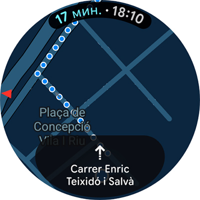 Карты Google. Если на смартфоне запущено ведение маршрута, то его можно отслеживать прямо на часах, что очень удобно. Там есть и маршрут по шагам, и ведение по карте. В поездках я этой возможностью часто пользуюсь.