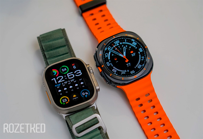 Некоторые обозреватели по поводу этих часов почему-то заявляют, что они, мол, "слизаны с Apple Watch Ultra". Вот, например, фраза из обзора на Rozetked - "Да, Galaxy Watch Ultra удивительно похожи на Apple Watch Ultra". И тут же приводится фотография в подтверждение этих слов. Да, точно, прям слизали один в один, безобразие!