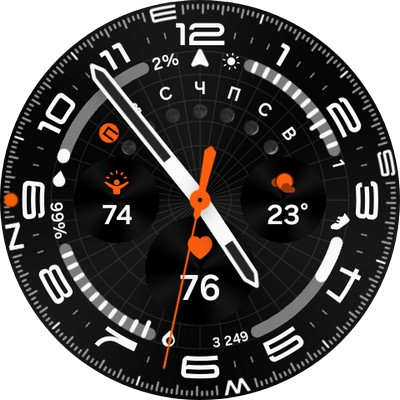 Датчики: BioSensor второго поколения (SpO2, пульс, ЭКГ, измерение артериального давления), барометр, акселерометр, альтиметр, гироскоп, компас, датчик освещенности