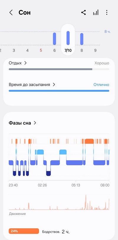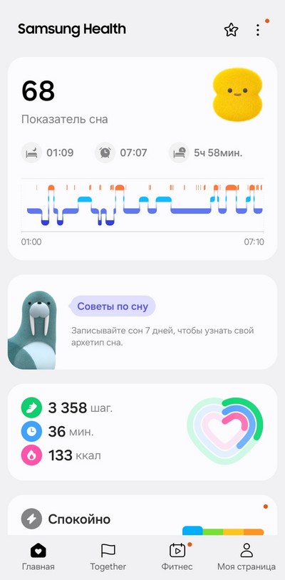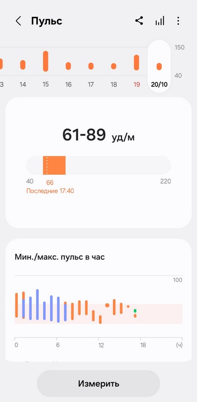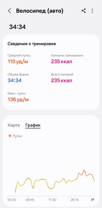 Ну и теперь давайте посмотрим, как собранные данные выглядят в приложении Samsung Health.