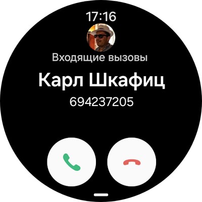 Входящий звонок, разговор с часов. Слышимость вполне пристойная, пользоваться можно.
