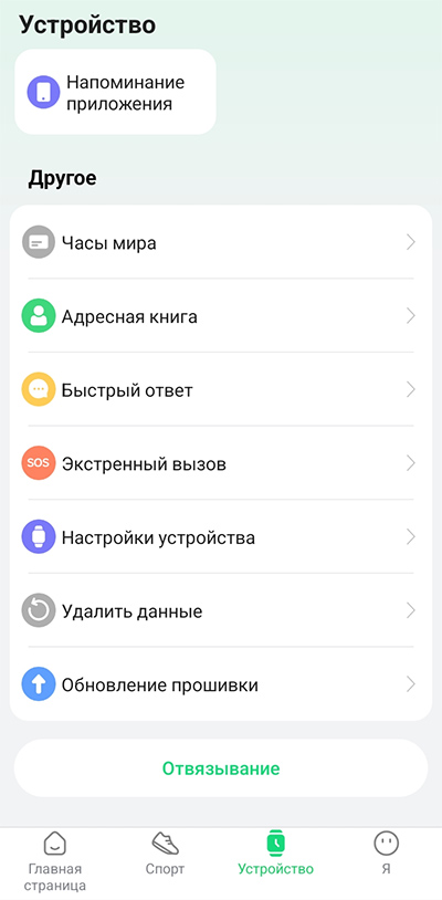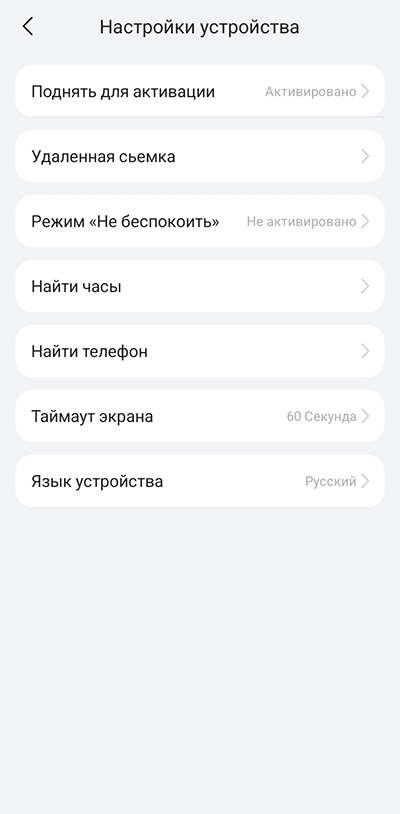 Настройки мониторинга здоровья, настройки устройства.
