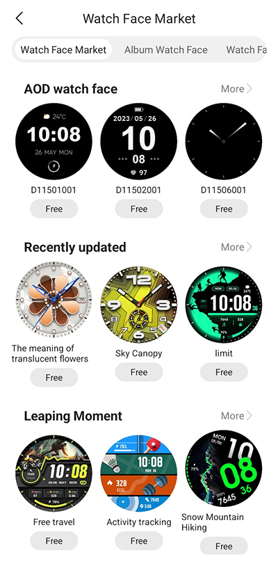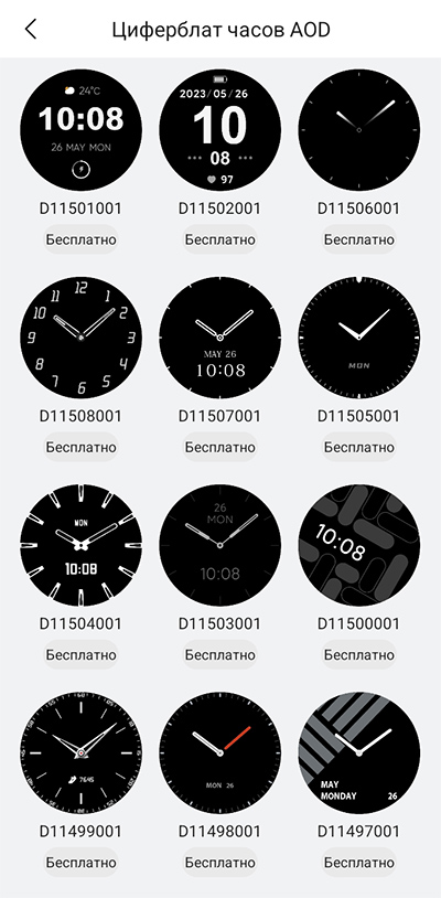 Причем есть отдельный раздел с циферблатами для AOD (обычные циферблаты тут не имеют своего варианта для AOD), и в часах можно держать шесть вариантов AOD.